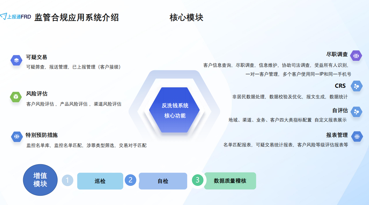 監管合規: 提供全方位數據分析、大數據客戶交易合規分析,支撐監管科技應用
