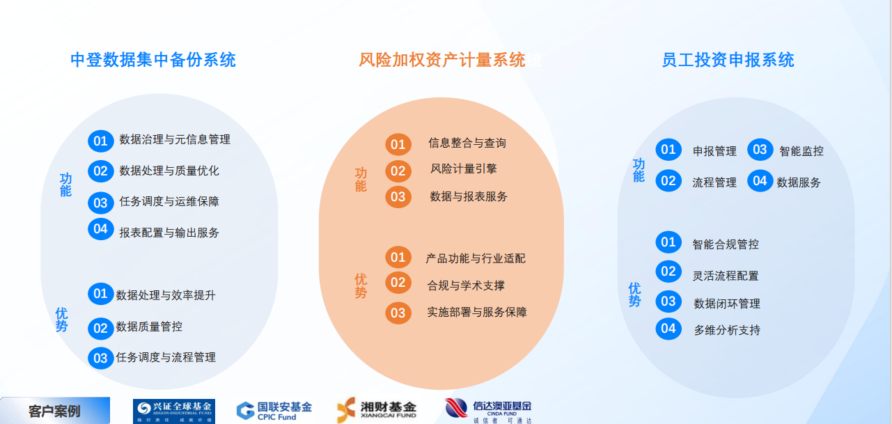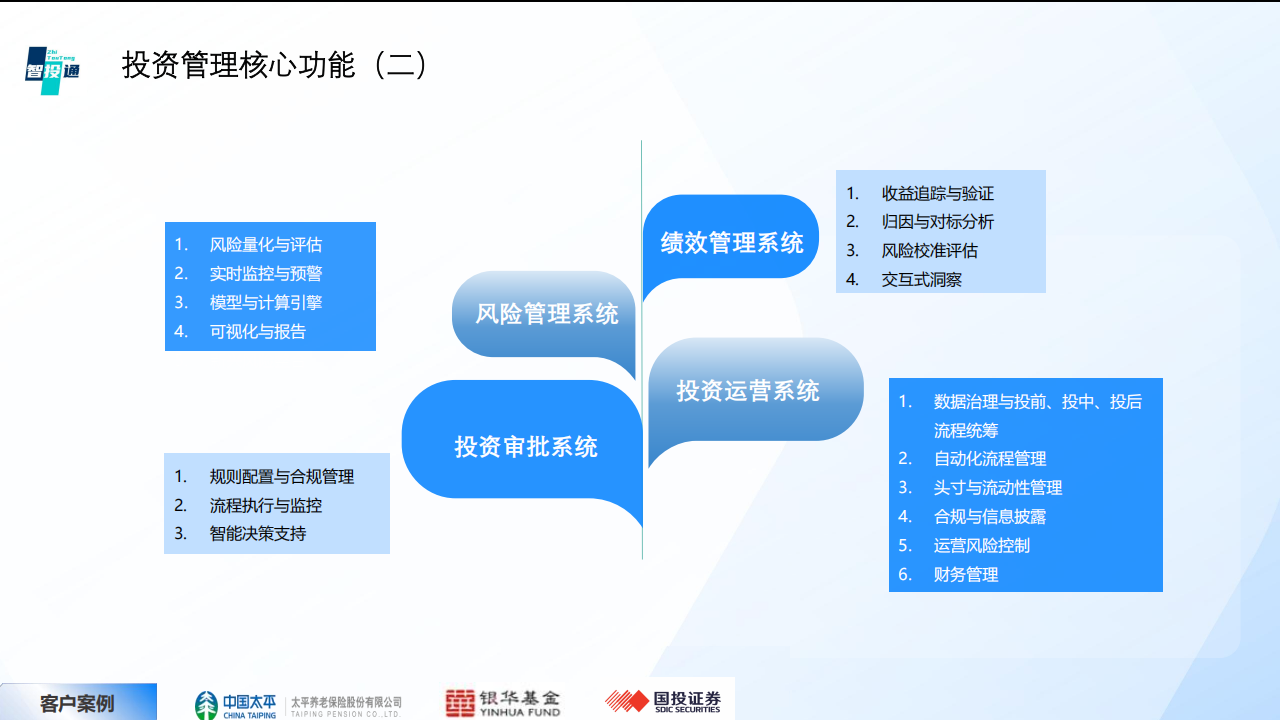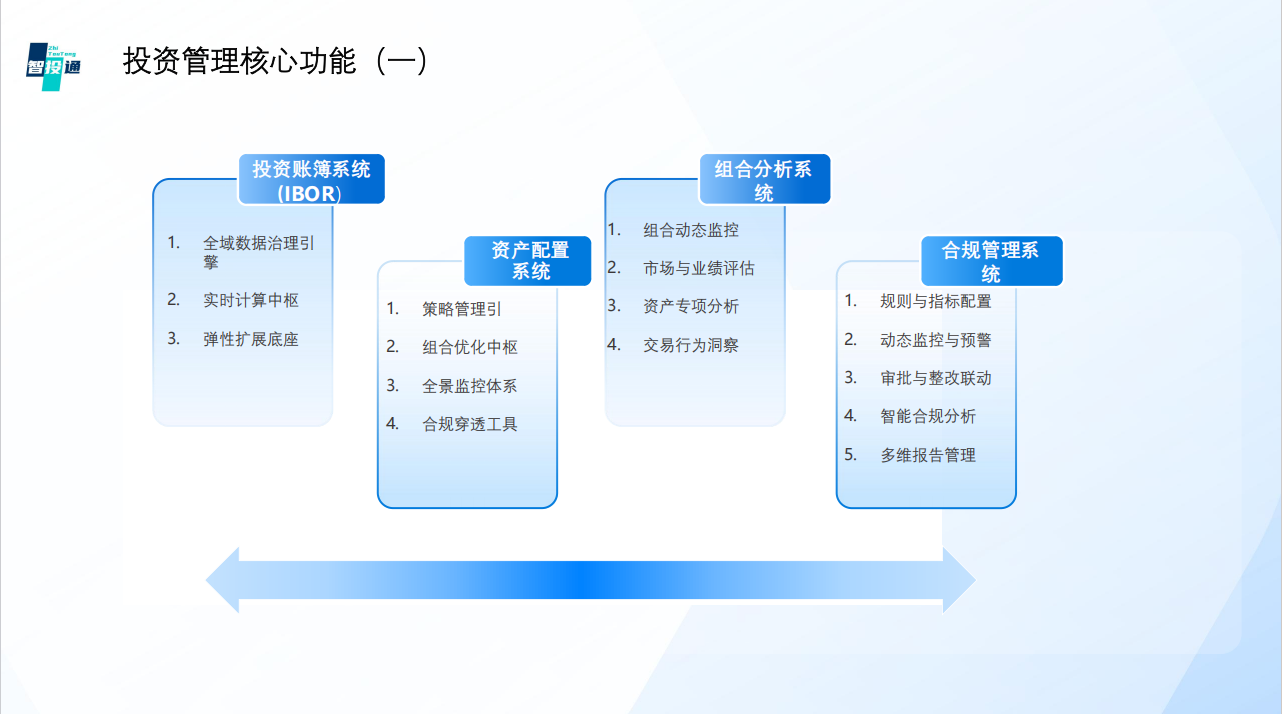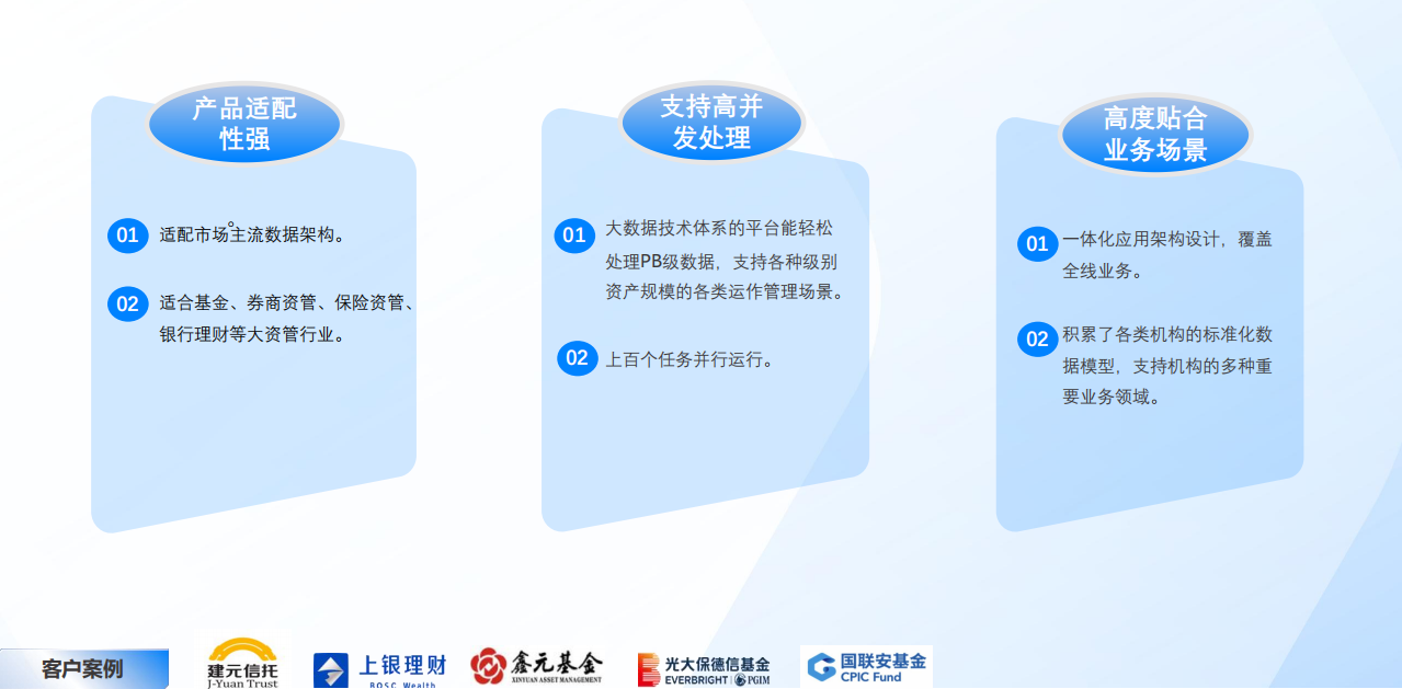 投資研究:提供管理和投資決策的系統化支持,投資場景的數據分析動態化、投資賬戶分析數據可視化。